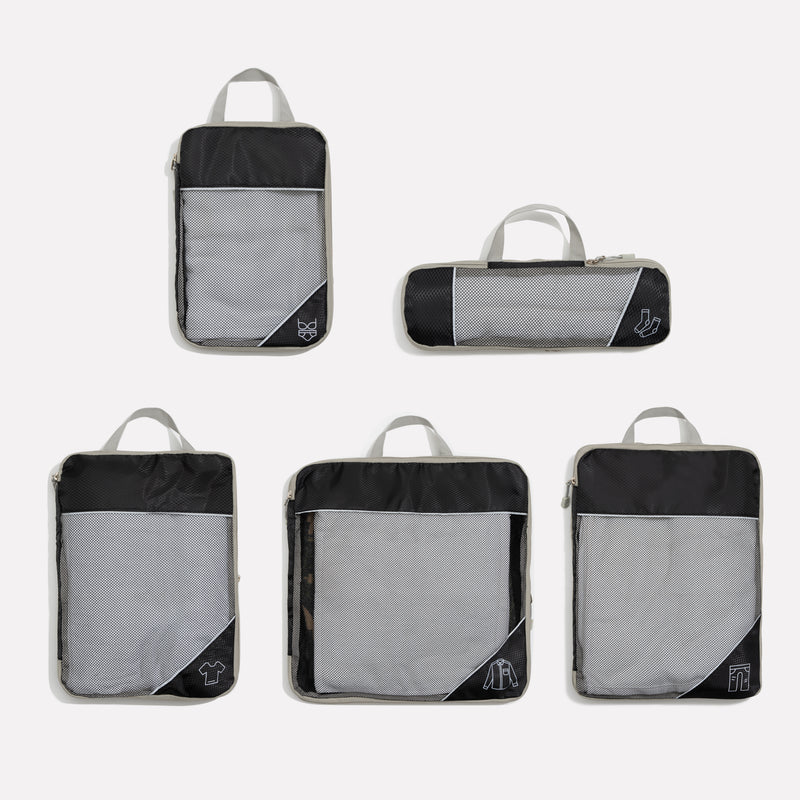 Each cube features a dedicated compression zipper that flattens clothes and saves space in your suitcase.